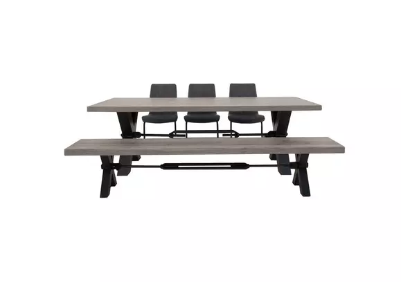 Grey Wood Dining Table And Bench Set / Matias Grey 6 Piece Dining Set Living Spaces / 3pc timber outdoor dining table & bench seat setting hardwood eucalyptus natural.. Benches have plastic caps to protect floors. Morland dining table & bench set, mango wood. The elegant ovo table and bench were designed by sir normal foster for uk company benchmark; Emmerson reclaimed wood dining bench stone gray. Get set for dining table bench at argos.