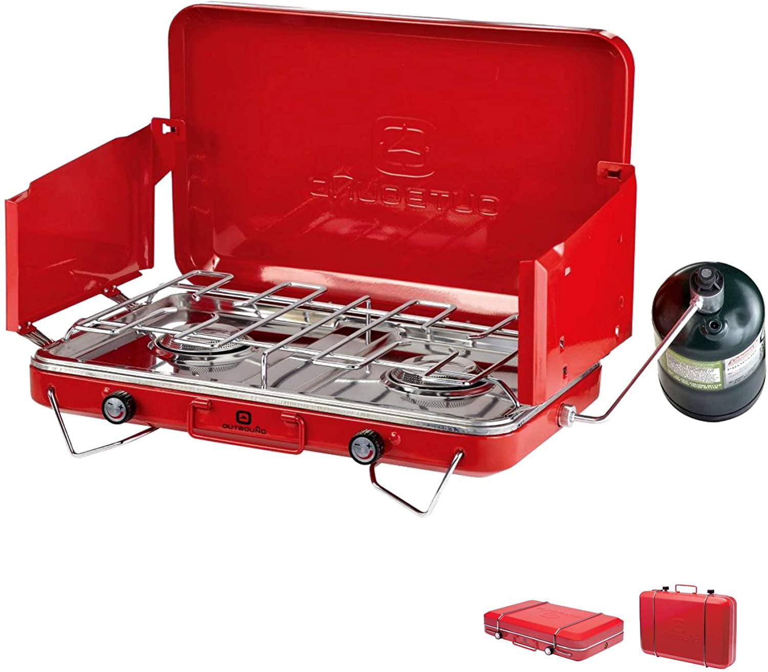 Outbound camping stove portable propane gas stove 2 burners perfect gas grill. By entering below, i agree to receive emails from the coleman company, inc., regarding promotions, events. Even if i have to purchase the butane canisters it's still cheaper than to run my stove for a period of time. Large enough for most skillets, pots, woks, and pans. Concord deluxe 16 banjo burner stove.